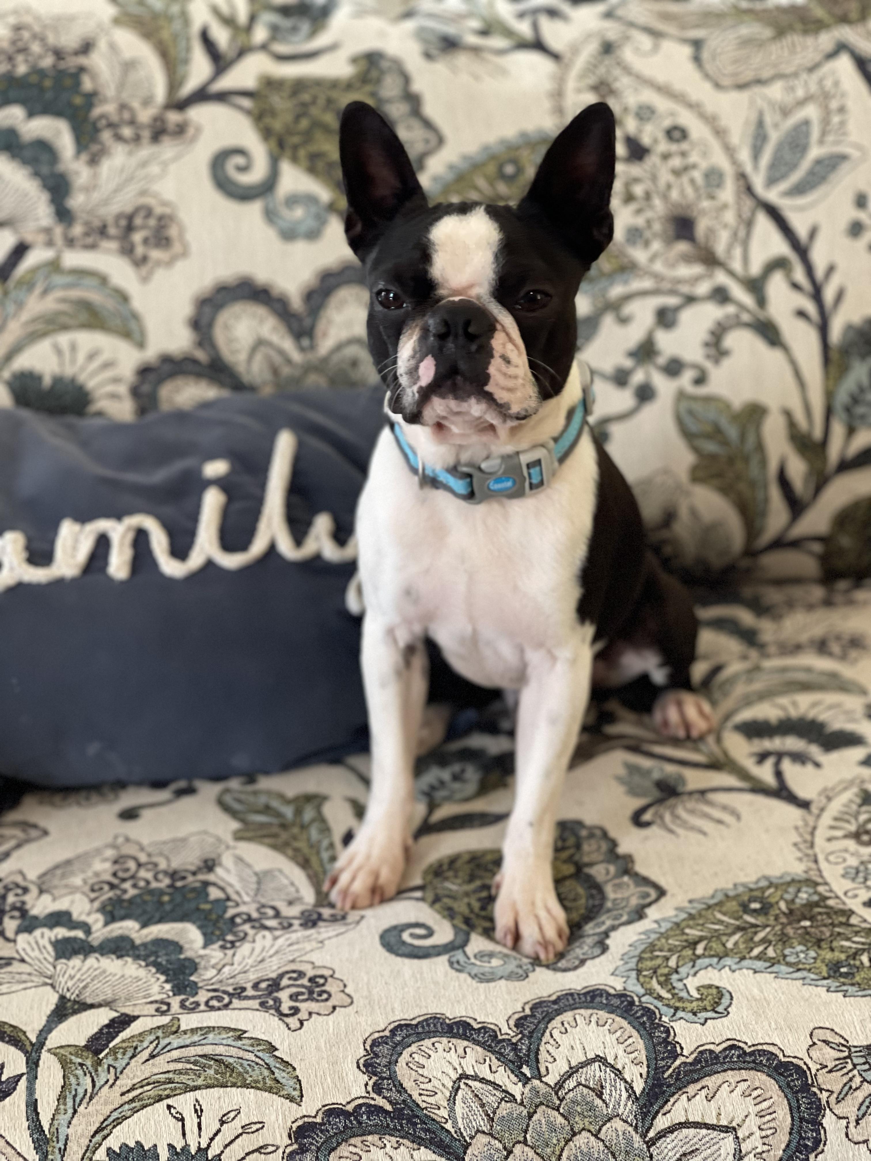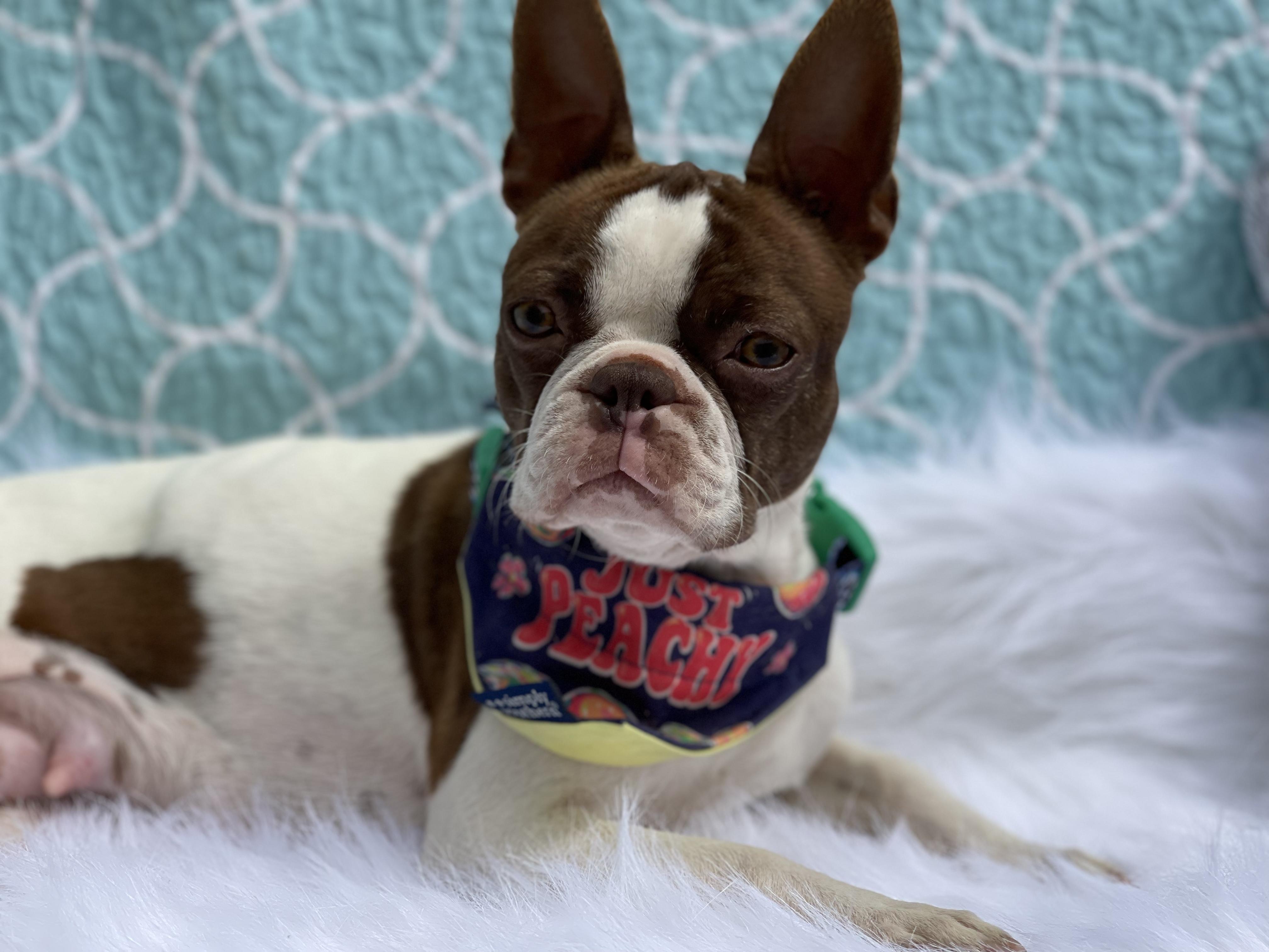 Chevy is a male Boston Terrier. Carefully selected as a great representative of his breed, Jacklyn decided to make him part of their program. Jacklyn has passed Good Dog’s screening process, which involved a review of their breeding practices, environment, and the mental and physical health of their dogs.