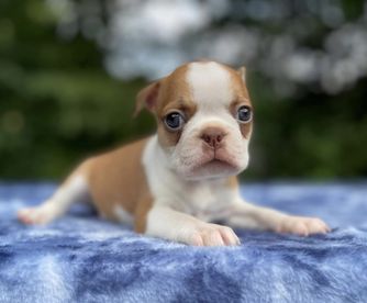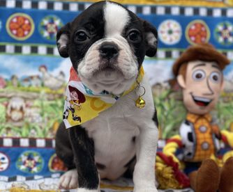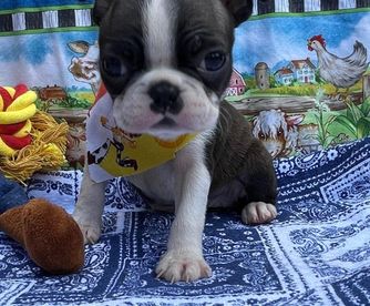 I'm Jacklyn C., the breeder behind Backwoods Boston Terriers located in Kentucky. Our puppies are all vet checked, vaccinated and cleared before they leave our care. Our puppies come with health guarantee and AKC pet insurance. They are raised in our home with children so they go to their new families well socialized.