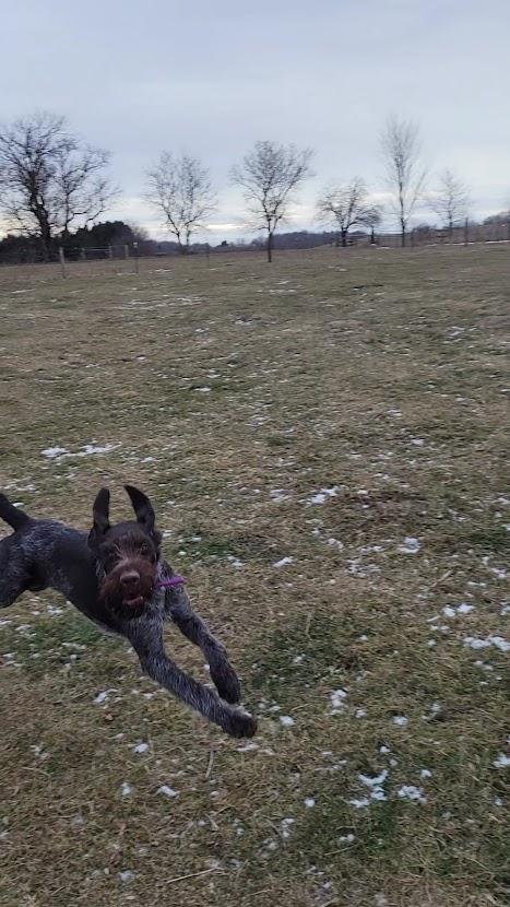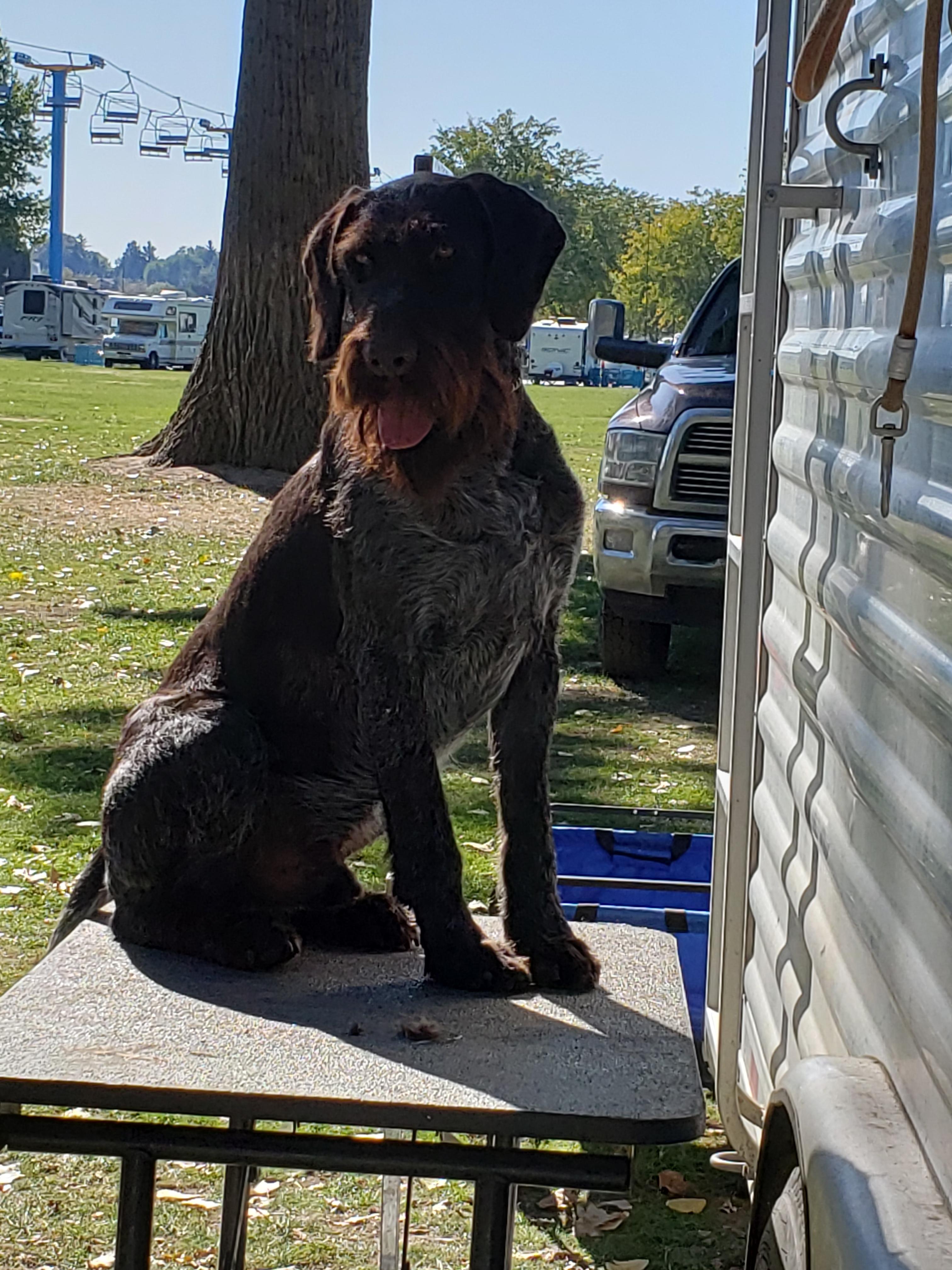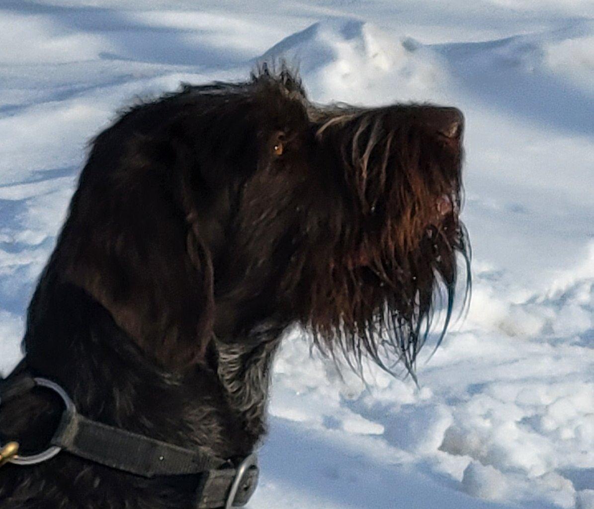 Enno is a male German Wirehaired Pointer almost 9 years old. Carefully selected as a great representative of his breed, Elizabeth decided to make him part of their program. Elizabeth has passed Good Dog’s screening process, which involved a review of their breeding practices, environment, and the mental and physical health of their dogs.