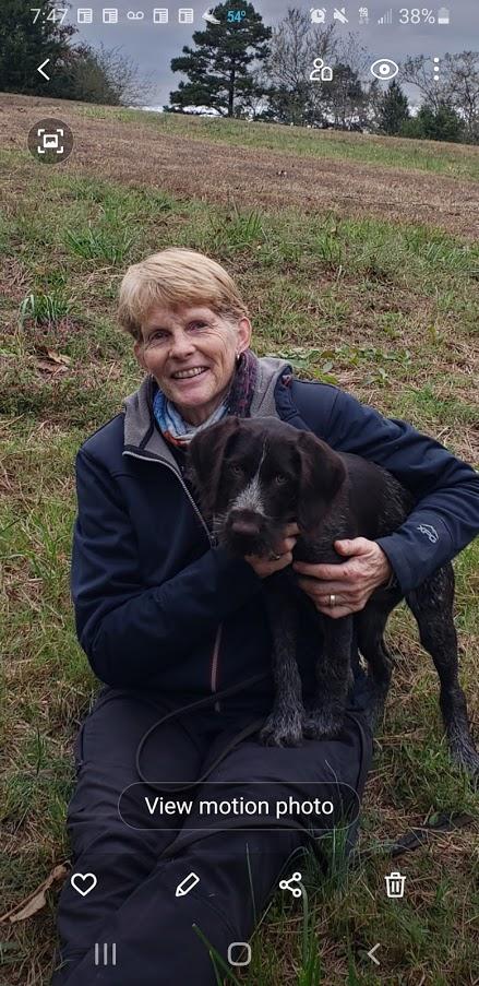 Nuttie is a female German Wirehaired Pointer about 9 years old. Carefully selected as a great representative of her breed, Elizabeth decided to make her part of their program. Elizabeth has passed Good Dog’s screening process, which involved a review of their breeding practices, environment, and the mental and physical health of their dogs.
