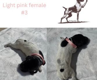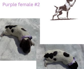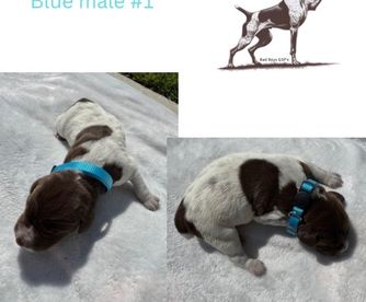 Our puppies include white and liver, liver roan, liver and white, liver, black roan, black, and black and white. Colors will vary depending on the parent dogs.