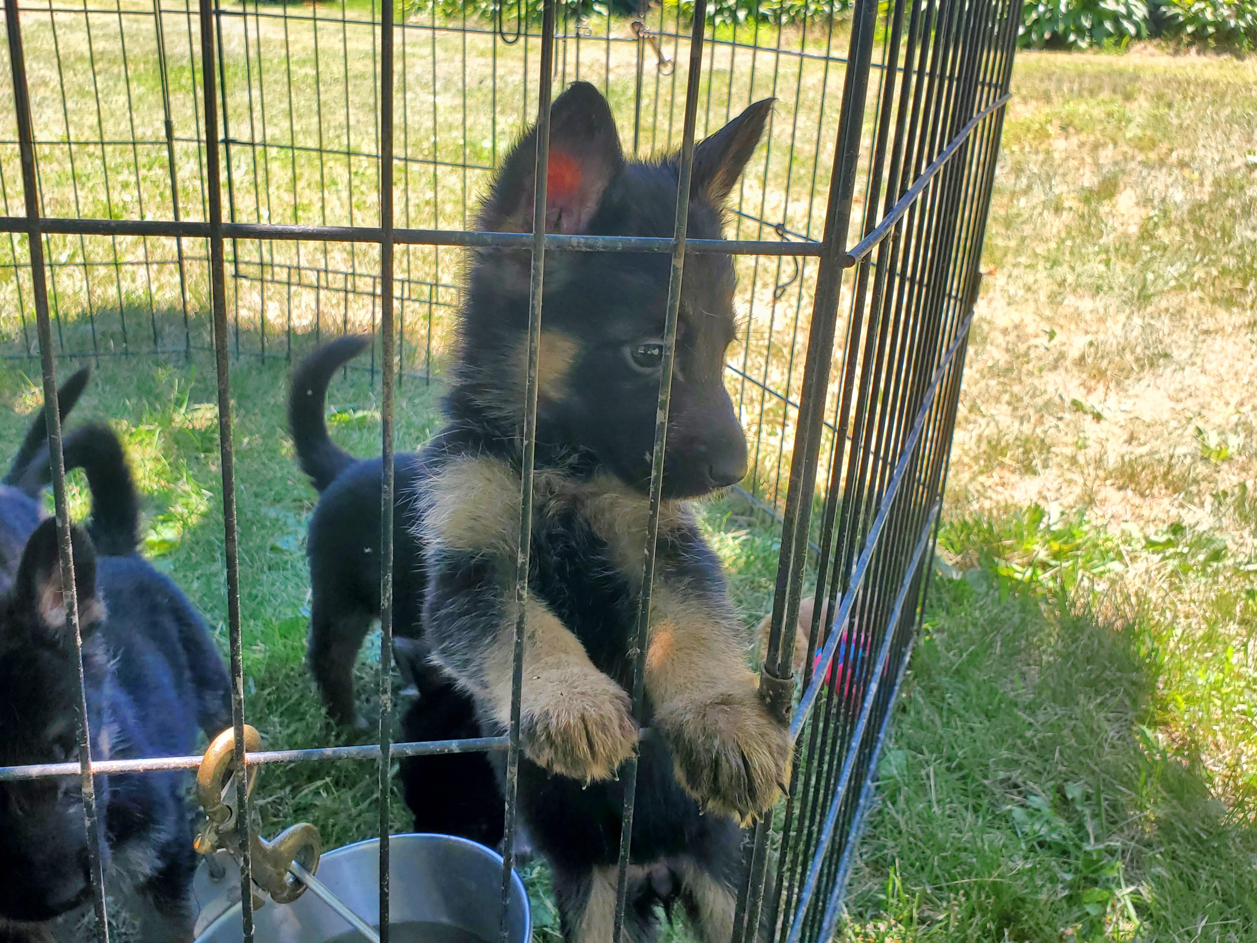 We space litters and are extremely selective in our breeding program, utilizing only the top lines with proven structure, working ability, and temperaments. We focus on healthy hips and longevity so that your new addition will be an unforgettable companion for many years. Our dogs exude intelligence, loyalty and the bomb-proof, family dog temperament a true Shepherd should have. All pups are temperament tested and include 6 weeks of free puppy preschool classes.