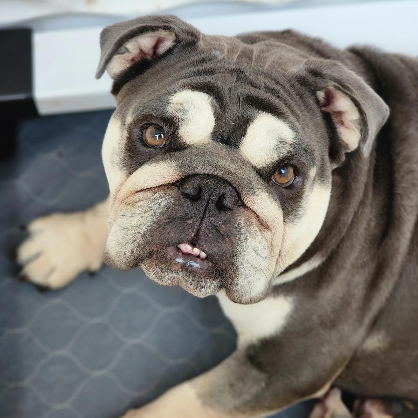 harley is a beautiful fully suited blue bulldog with a beautiful personality to match. she is a gentle sweetheart that would like nothing more than to get head and belly scratches all day long.