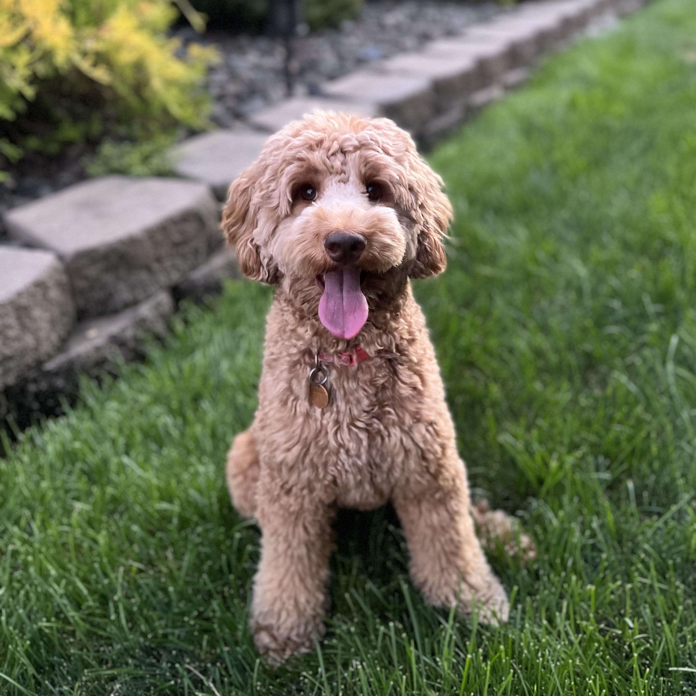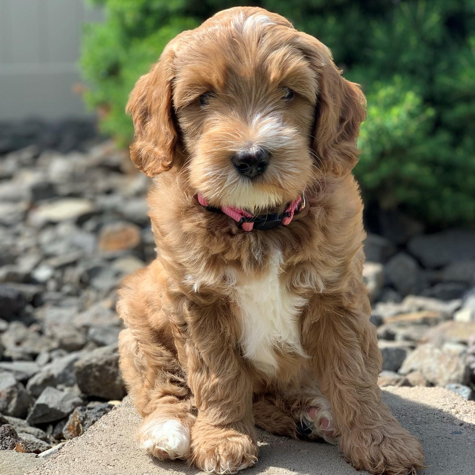 Keyla is from our Mabel's retirement litter with Bandit. "Keyla is such an amazing dog. She is so spunky and is happy go lucky 24/7. She is up for anything, whether it's going on a hike or lazing on the couch. She absolutely loves car rides and travels wit us everywhere. She is doing awesome with her training to be a service dog and has a bright future ahead of her. She is hte smartest dog we have ever owed. She is an incredibly sweet dog who knows when you are down and will lay in your lap for hours if you let her. We are so grateful to Badger Mountain Labradoodles for this amazing little girl. We don't know what we'd do without her." Olivia - Keyla's best friend