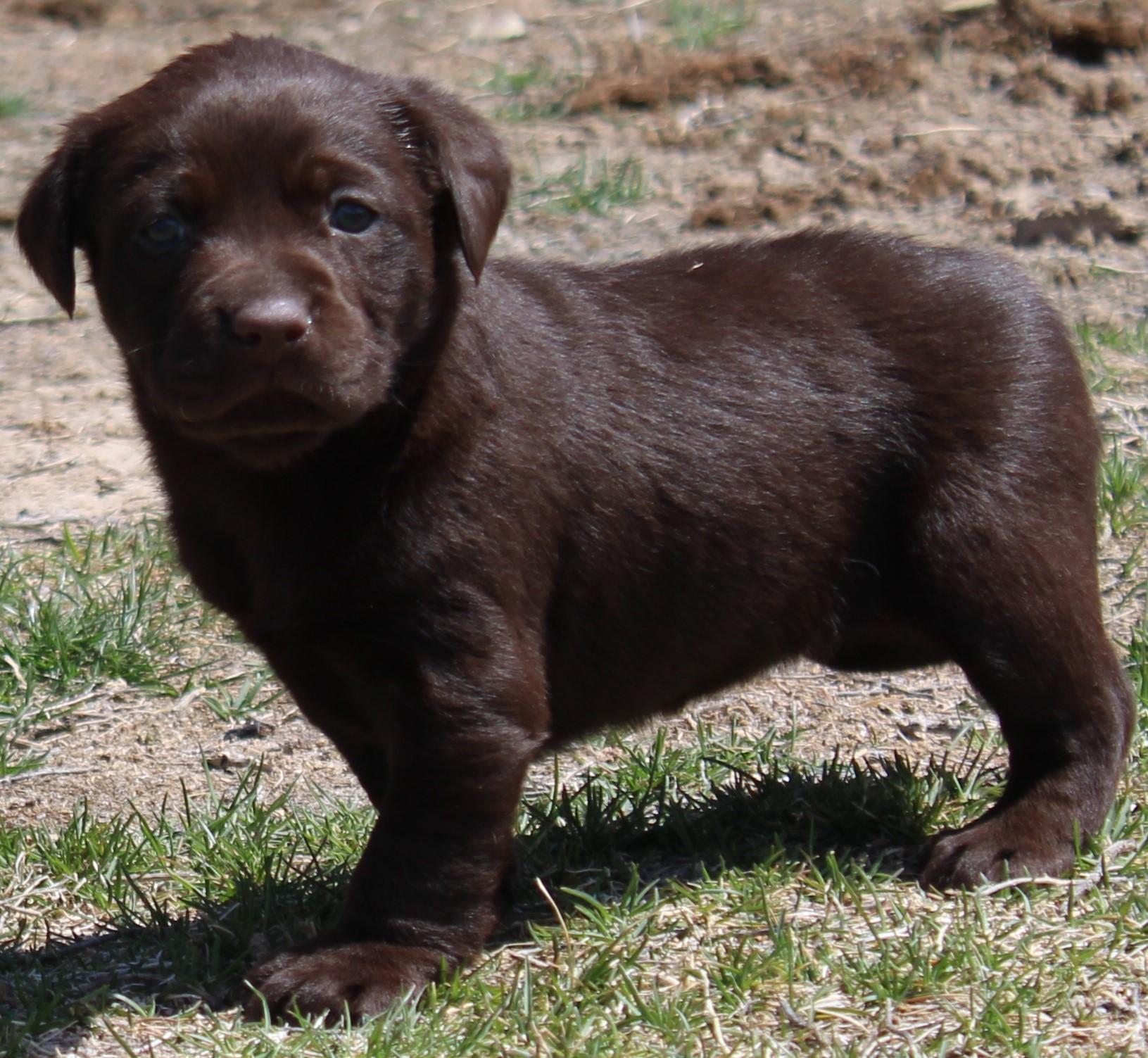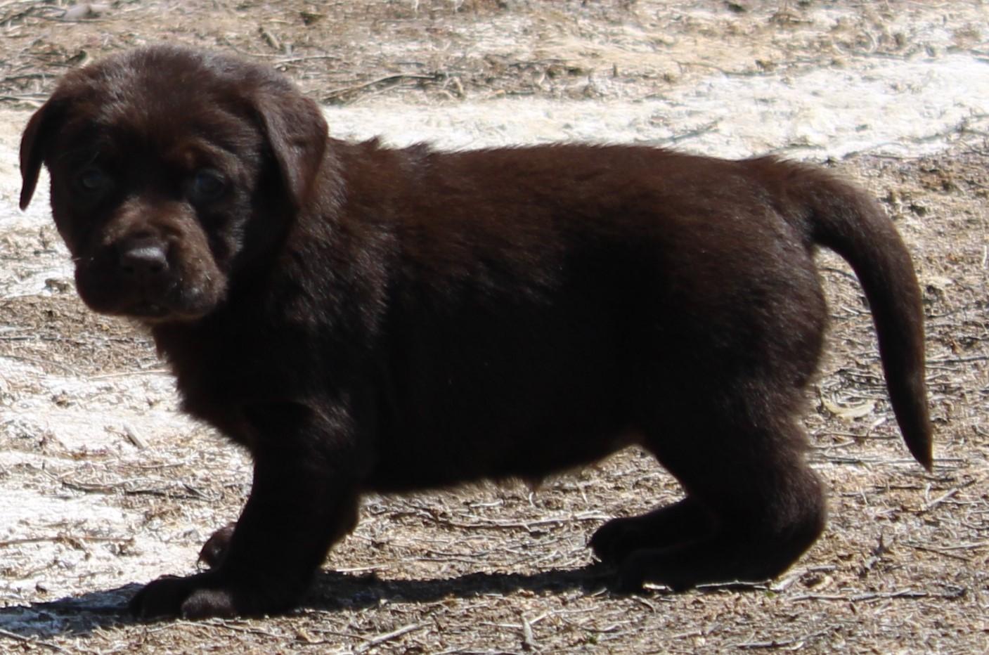 Gorgeous Male chocolate that is ofa good on hips, ofa normal on elbows, cardiac and eyes and dna tested cleared for multiple genetic conditions. JH (Junior Hunter) AKC titled. He has a loaded pedigree full of health tested and titled dogs.