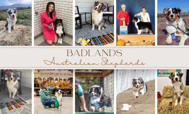 I'm Ashley K., the breeder behind Badlands Australian Shepherds located in Pierre, SD. I have been involved in Australian Shepherds since I was 4 years old. The breed is such a huge part of who I am, I strive to give back to the breed in a positive way. Not only do I work to produce health tested dogs who can succeed in the show and performance rings, I also strive to have dogs that can live and work on the farm.
