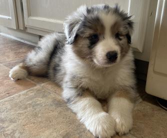 Our puppies include black and blue merle. Colors will vary depending on the parent dogs.
