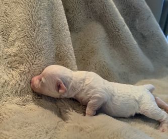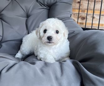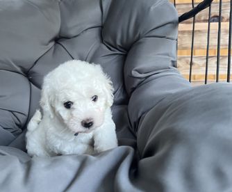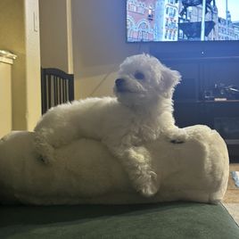 Archie is a male Bichon Frise. Carefully selected as a great representative of his breed, Tatyana decided to make him part of their program. Tatyana has passed Good Dog’s screening process, which involved a review of their breeding practices, environment, and the mental and physical health of their dogs.