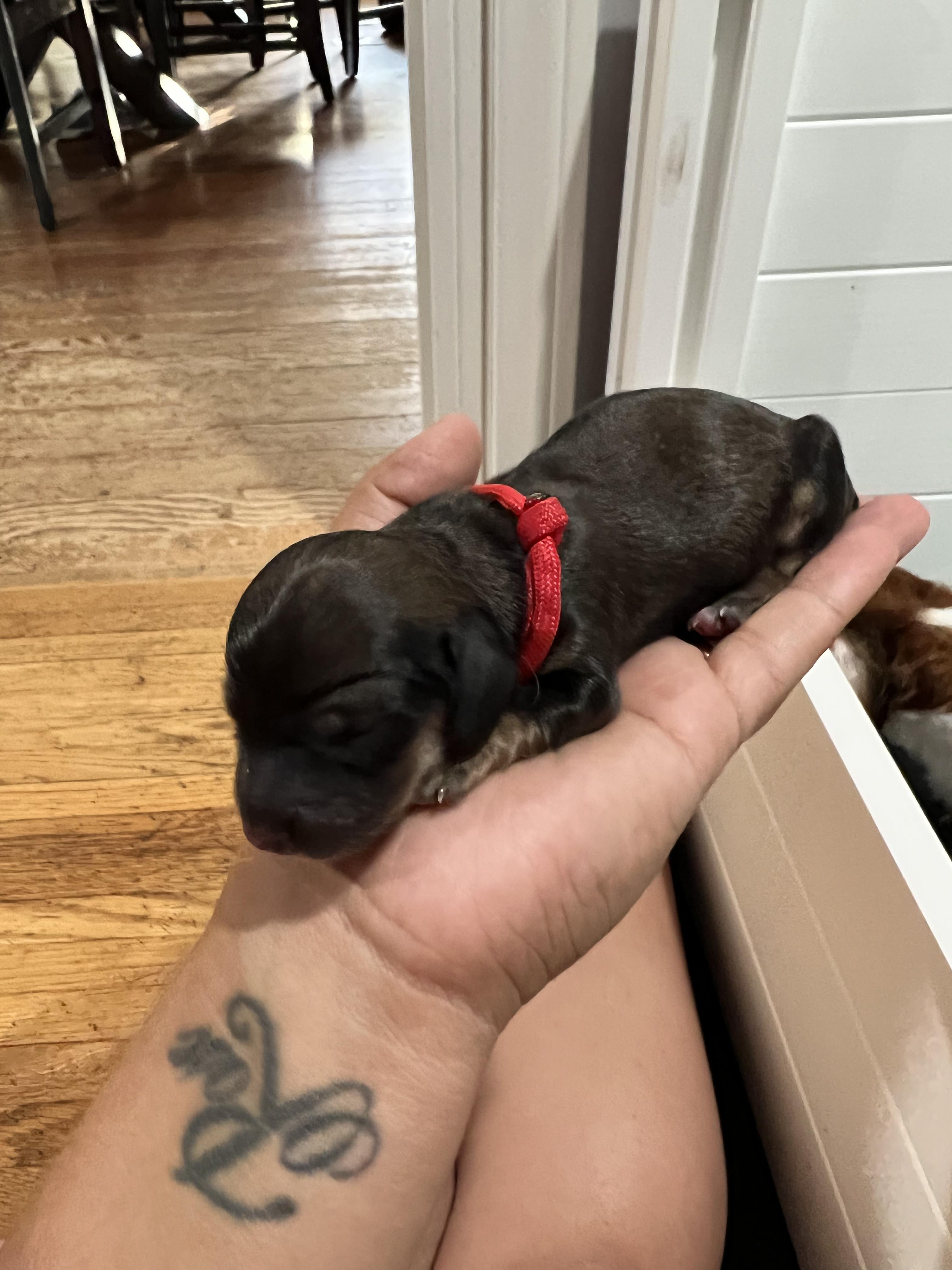 Sarah was incredibly responsive and attentive to our needs throughout the entire process of finding a new puppy. We sent her countless requests for videos, pictures, and information, and she always responded promptly, keeping us updated every step of the way-no matter how many questions we had. When we visited her, the atmosphere was warm and welcoming. We had the opportunity to meet the puppy's parents, and Sarah provided us with comprehensive details about the dog, including health concerns, care instructions, and even advice on what to do if the dog ever got lost. She explained that the puppy would be microchipped with both our information and hers for added safety. It's clear that Sarah genuinely cares about her dogs and takes great pride in her breeding program. Her dachshunds are absolutely beautiful, and I can't recommend her enough!