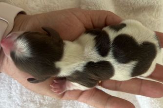 Our puppies include piebald, cream, red, chocolate, brindle, chocolate and tan, chocolate and cream, black and tan, black and cream, and dapple. Colors will vary depending on the parent dogs.