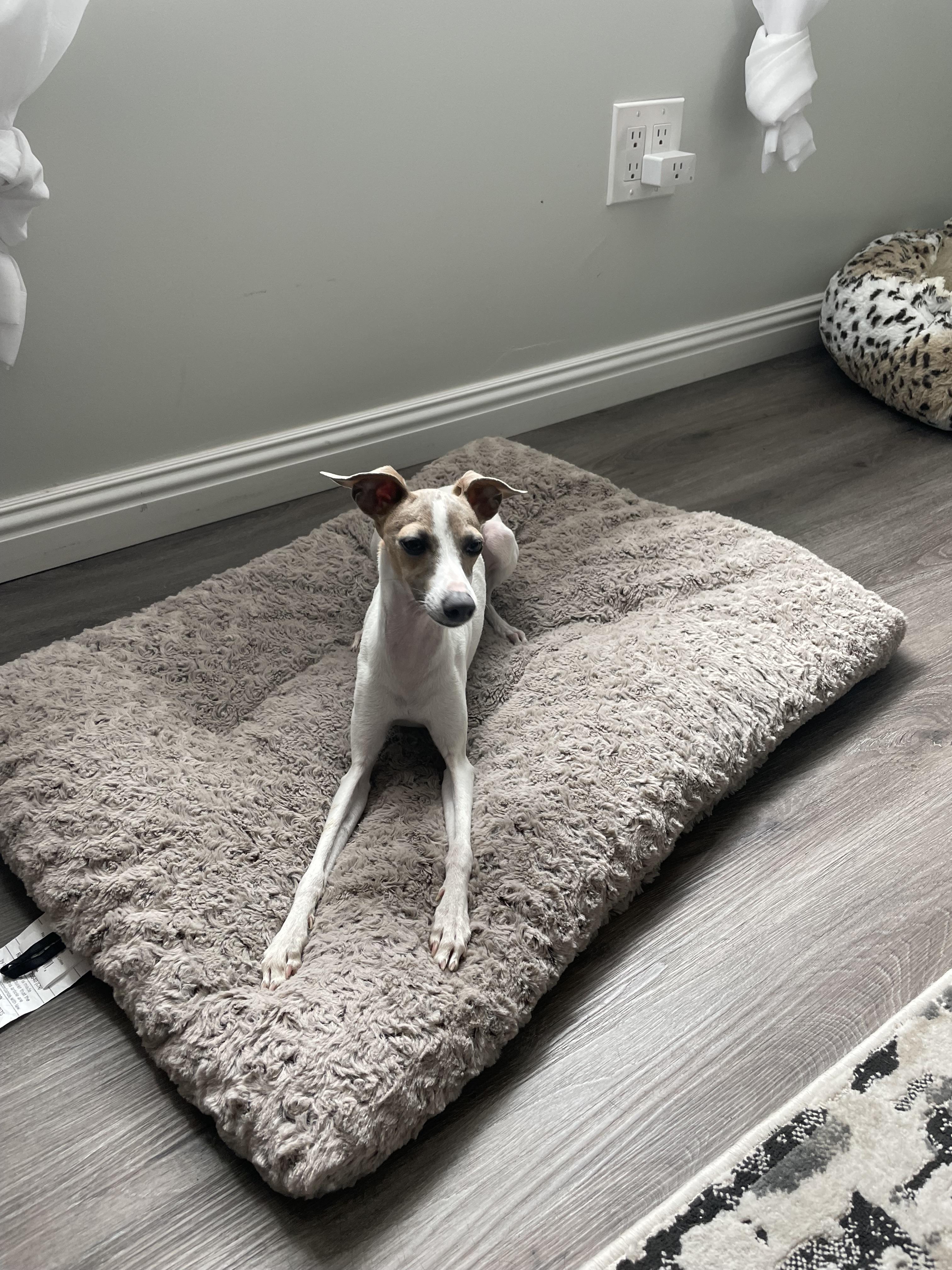 Buddy is a male Italian Greyhound. Carefully selected as a great representative of his breed, Noemy decided to make him part of their program. Noemy has passed Good Dog’s screening process, which involved a review of their breeding practices, environment, and the mental and physical health of their dogs.