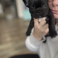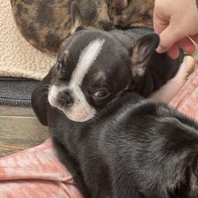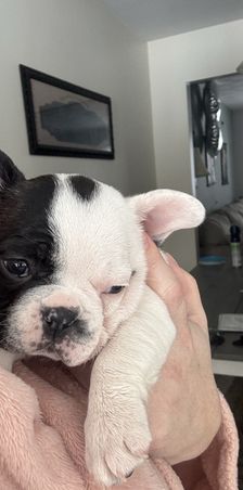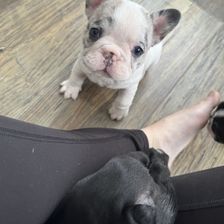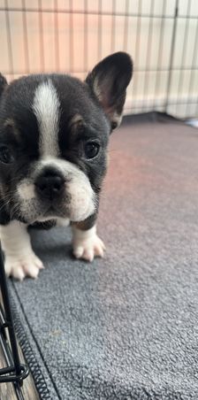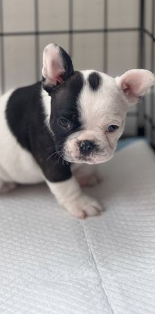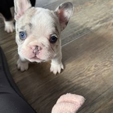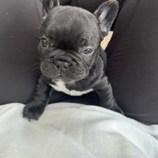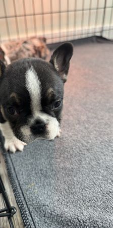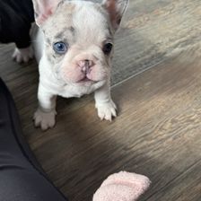 Daisy is a one and a half year old Frenchton, (French bulldog and Boston Terrier mix). She is 75% French Bulldog and 25% Boston Terrier. Her coat is Merle in color, and she is 100% beautiful. She has been health tested through embark. Aside from her beauty Daisy is SO smart, has been beyond easy to train, LOVES to snuggle and has such a great temperament.