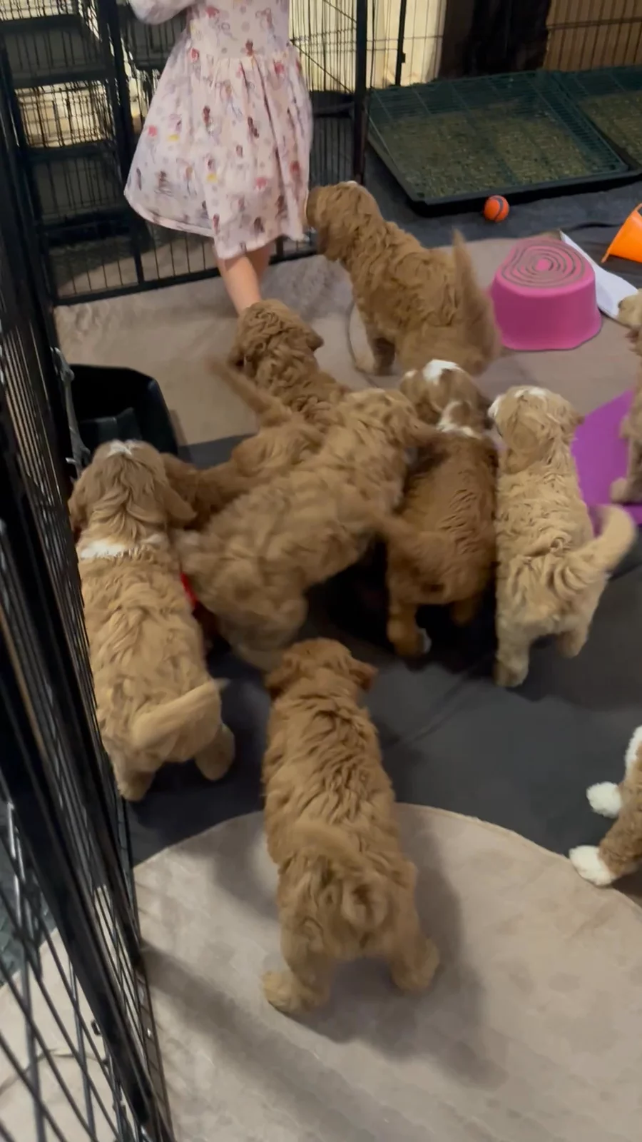 We handle the pups from day one. We use puppy culture to help with early neurological stimulation. My four children are very much a part of every stage of the puppies development. I am so glad that we have been able to incorporate my children at all ages to help and learn to care for puppies