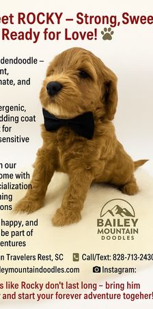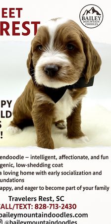 I'm Tania H., the breeder behind Bailey Mountain Doodles located in Travelers Rest, SC. We raise our puppies in our home with our four children. We provide families with well-socialized puppies with good qualities! Health tested parents because we want healthy puppies!