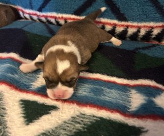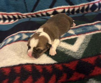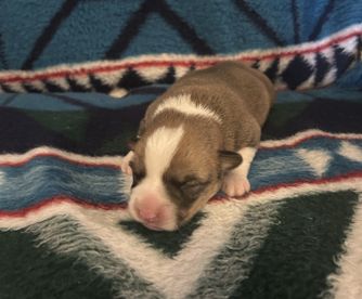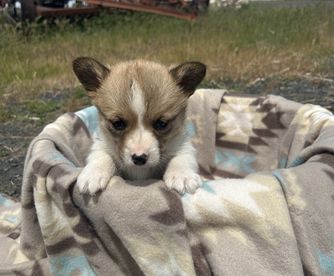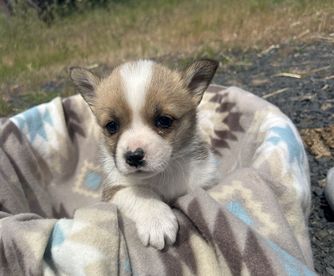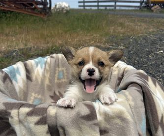 Chicken nugget is a beautiful triple clear red and white Pembroke, all our dogs are great family dogs that are around kids, cats and livestock.