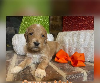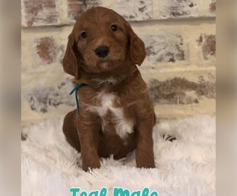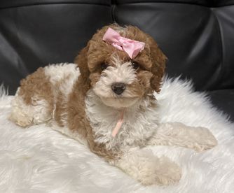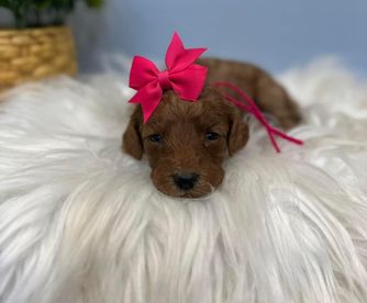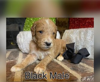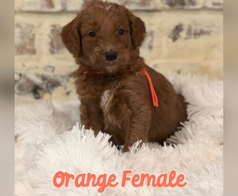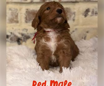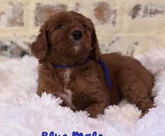 Our Cavapoo puppies include apricot and red. Goldendoodle puppies include cream, apricot, red, black, merle, and parti. Colors will vary depending on the parent dogs.