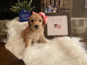 Cupcake is a female Goldendoodle. Carefully selected as a great representative of her breed, Bailey decided to make her part of their program. Bailey has passed Good Dog’s screening process, which involved a review of their breeding practices, environment, and the mental and physical health of their dogs.