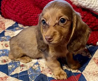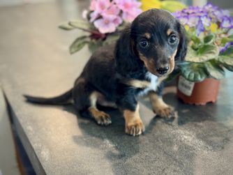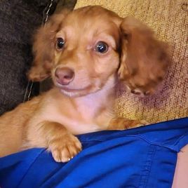 Sammy is a male Dachshund. Carefully selected as a great representative of his breed, Kim decided to make him part of their program. Kim has passed Good Dog’s screening process, which involved a review of their breeding practices, environment, and the mental and physical health of their dogs.