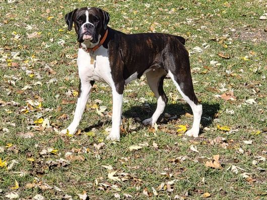 Jersey is a female Boxer. Carefully selected as a great representative of her breed, Amber decided to make her part of their program. Amber has passed Good Dog’s screening process, which involved a review of their breeding practices, environment, and the mental and physical health of their dogs.