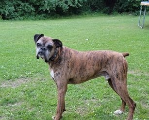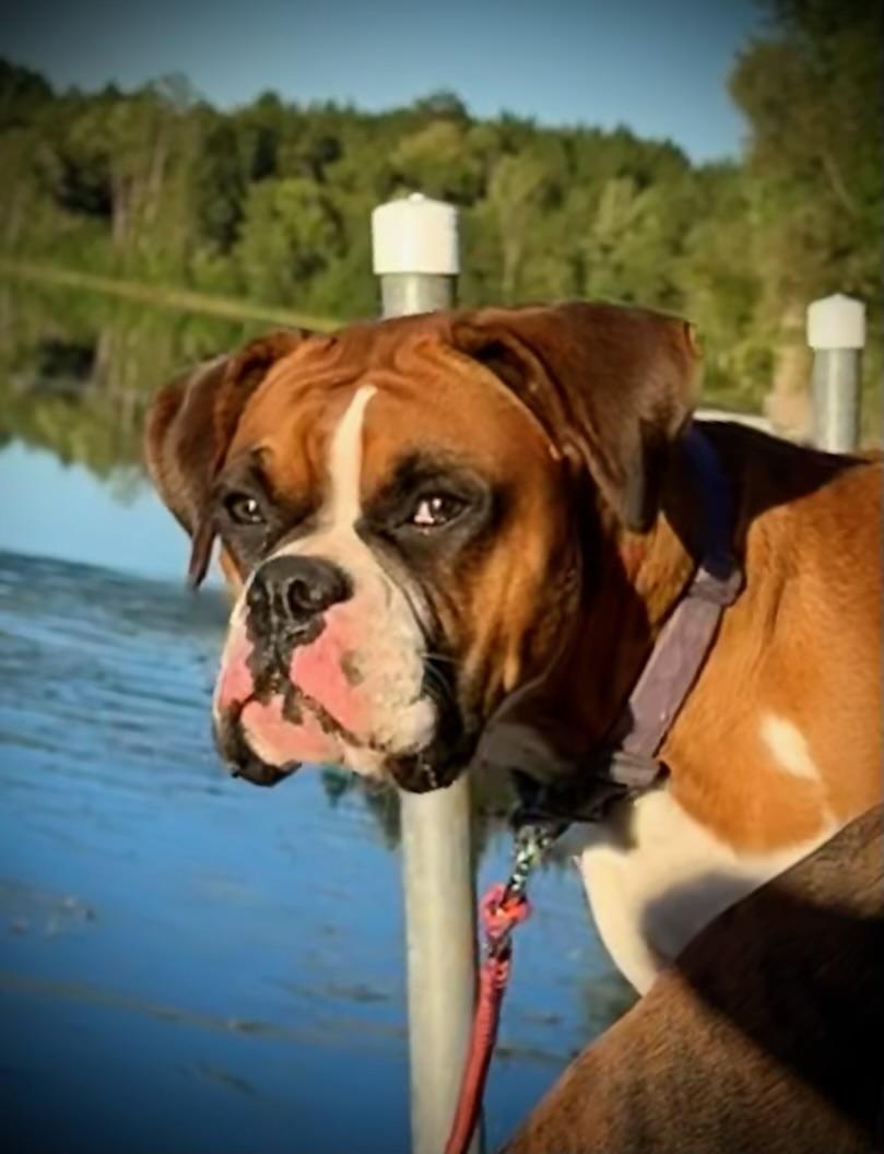 River is a female Boxer. Carefully selected as a great representative of her breed, Amber decided to make her part of their program. Amber has passed Good Dog’s screening process, which involved a review of their breeding practices, environment, and the mental and physical health of their dogs.