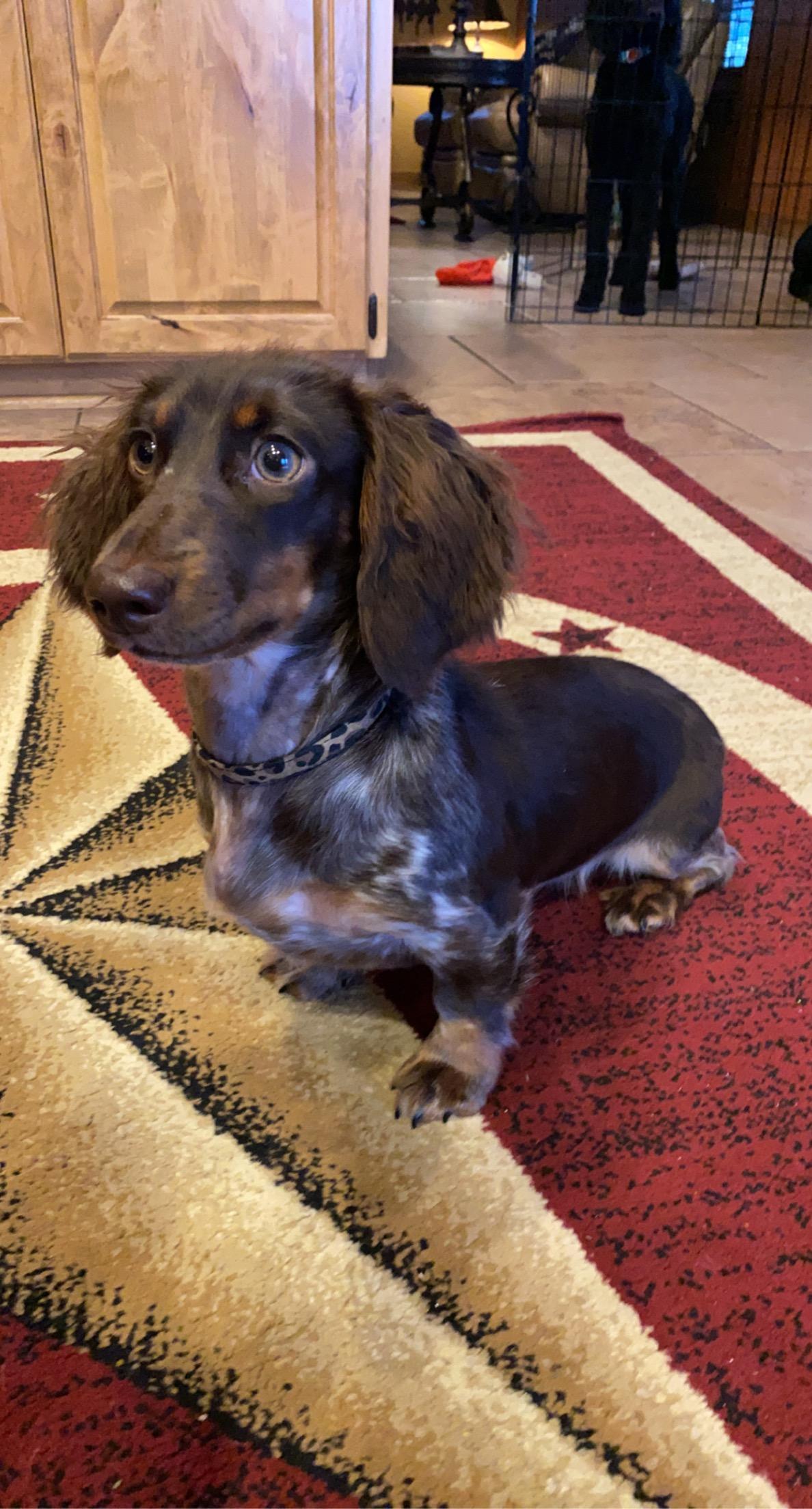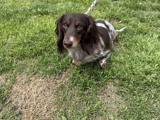 Mollie is a female Dachshund. Carefully selected as a great representative of her breed, Montgomery decided to make her part of their program. Montgomery has passed Good Dog’s screening process, which involved a review of their breeding practices, environment, and the mental and physical health of their dogs.