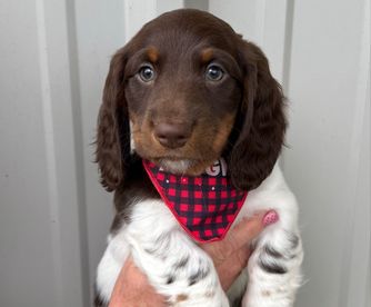 Cowboy is a male Dachshund. Carefully selected as a great representative of his breed, Montgomery decided to make him part of their program. Montgomery has passed Good Dog’s screening process, which involved a review of their breeding practices, environment, and the mental and physical health of their dogs.