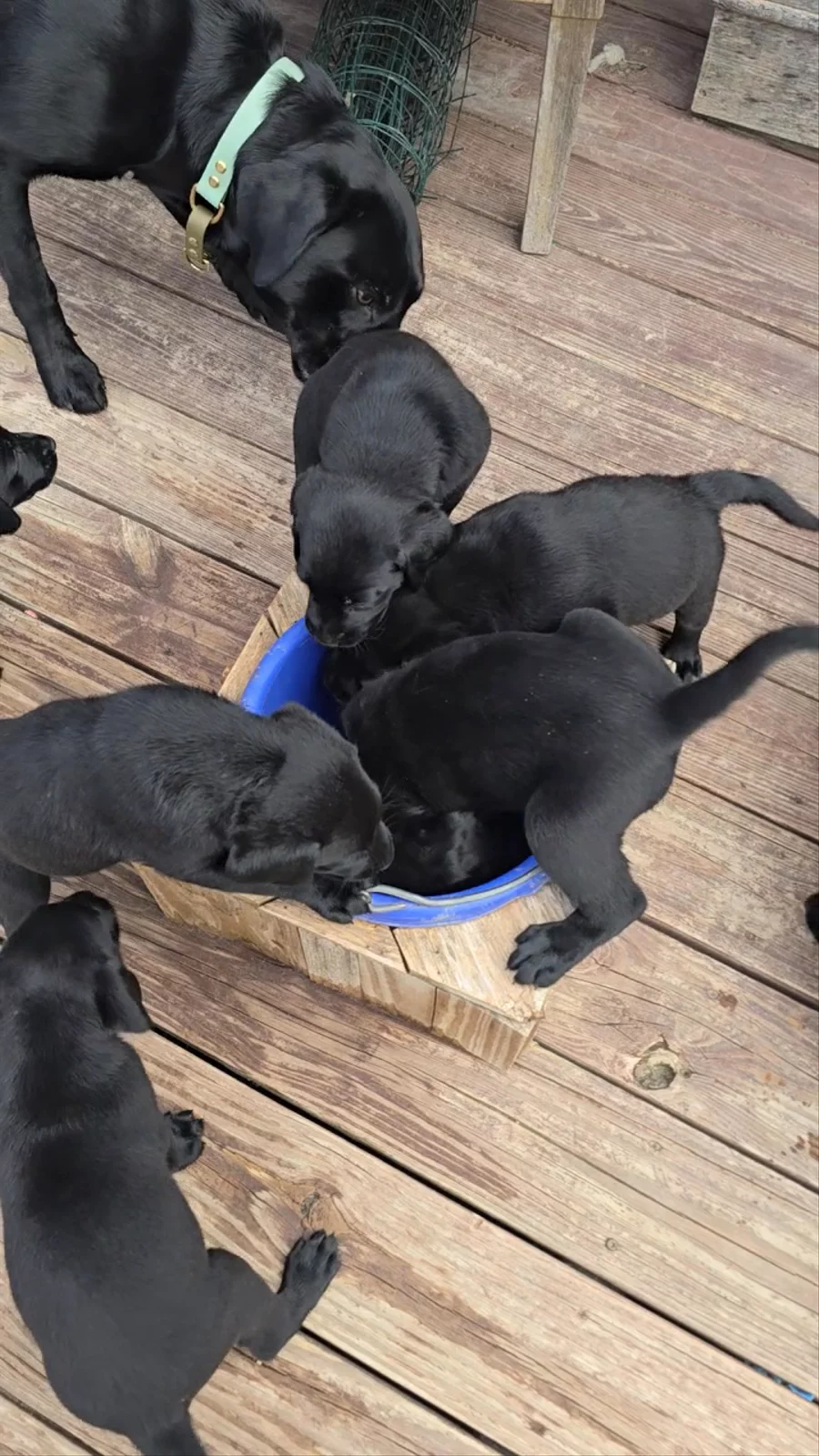 We have a mix of British and American Labrador genetics. We have selected heavily for health and a stable temperament. We compete with out dogs in multiple different venues (Dock, Elite Shed dog, Scent work, Hunt testing, etc) which requires a really athletic and trainable dog! In addition, our dogs hang out with our toddler and spend some days snoozing on the couch.