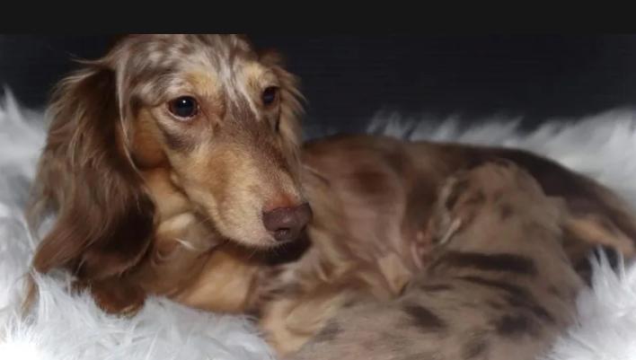 Storm is a female Dachshund. Carefully selected as a great representative of her breed, D decided to make her part of their program. D has passed Good Dog’s screening process, which involved a review of their breeding practices, environment, and the mental and physical health of their dogs.
