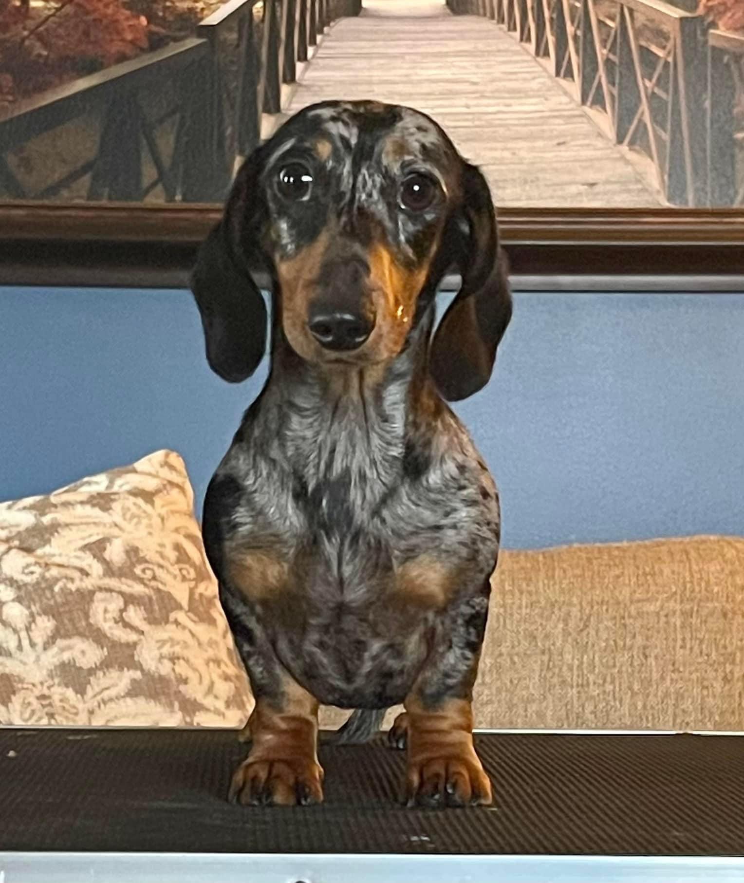 Moon Pie is a female Dachshund over 3 years old. Carefully selected as a great representative of her breed, Shelly decided to make her part of their program. Shelly has passed Good Dog’s screening process, which involved a review of their breeding practices, environment, and the mental and physical health of their dogs.