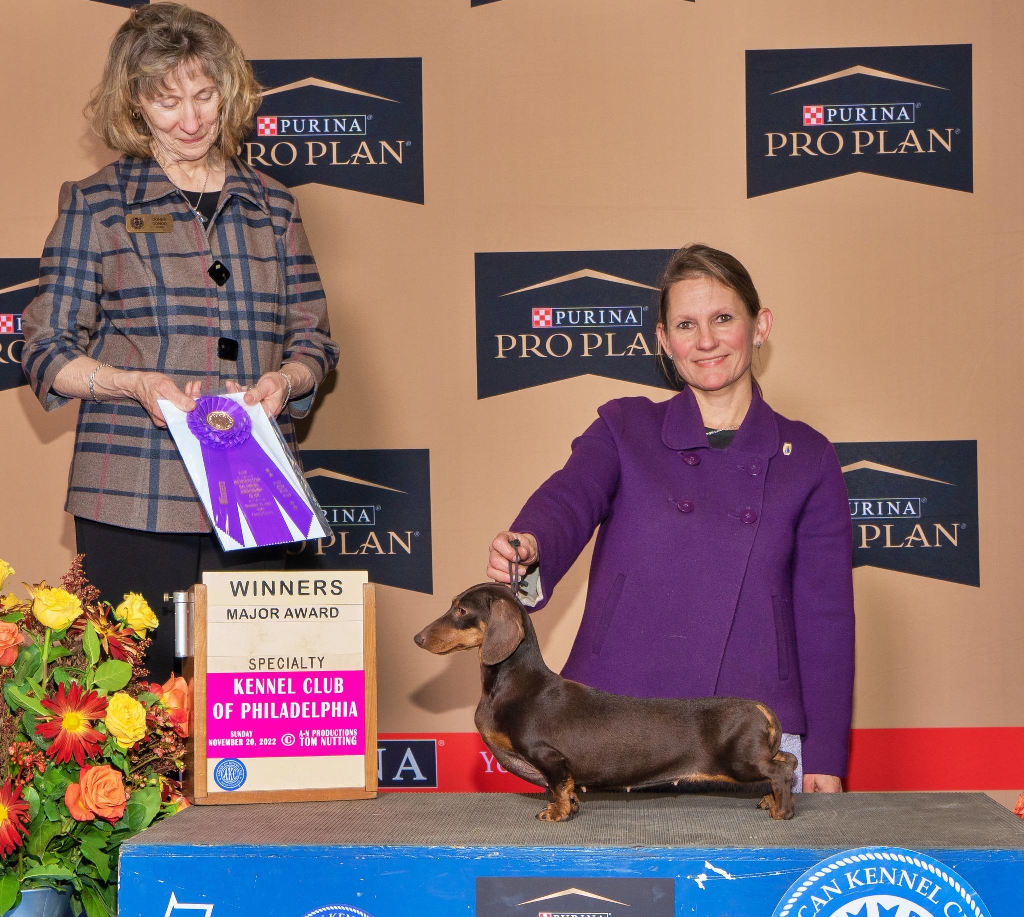 Seta is a female Dachshund. Carefully selected as a great representative of her breed, Shelly decided to make her part of their program. Shelly has passed Good Dog’s screening process, which involved a review of their breeding practices, environment, and the mental and physical health of their dogs.