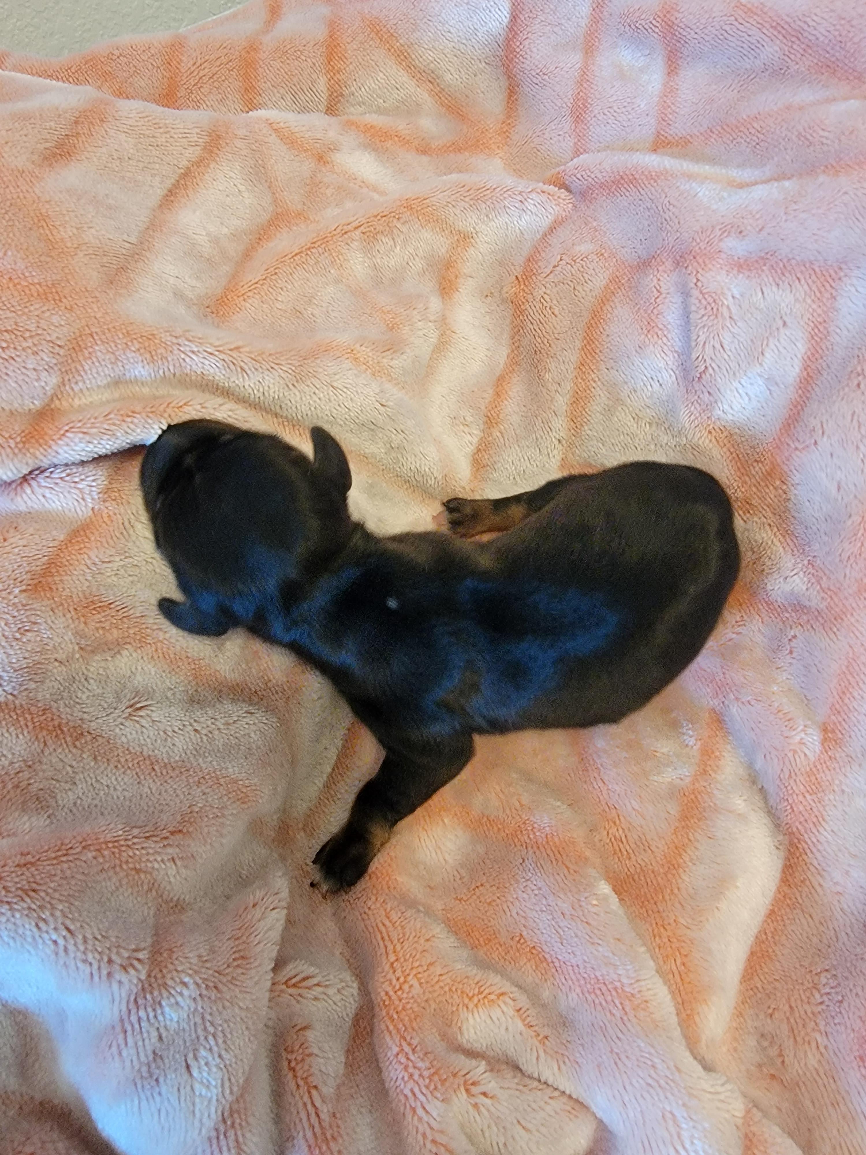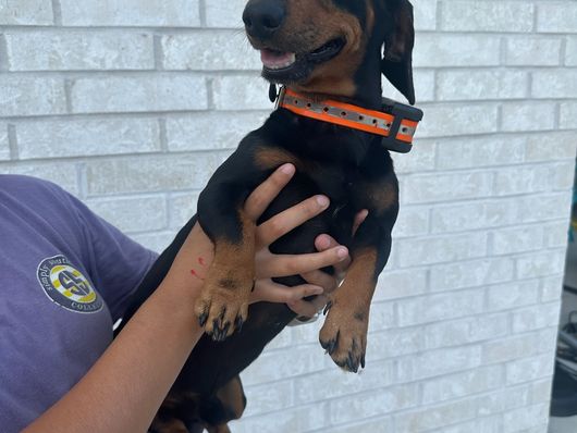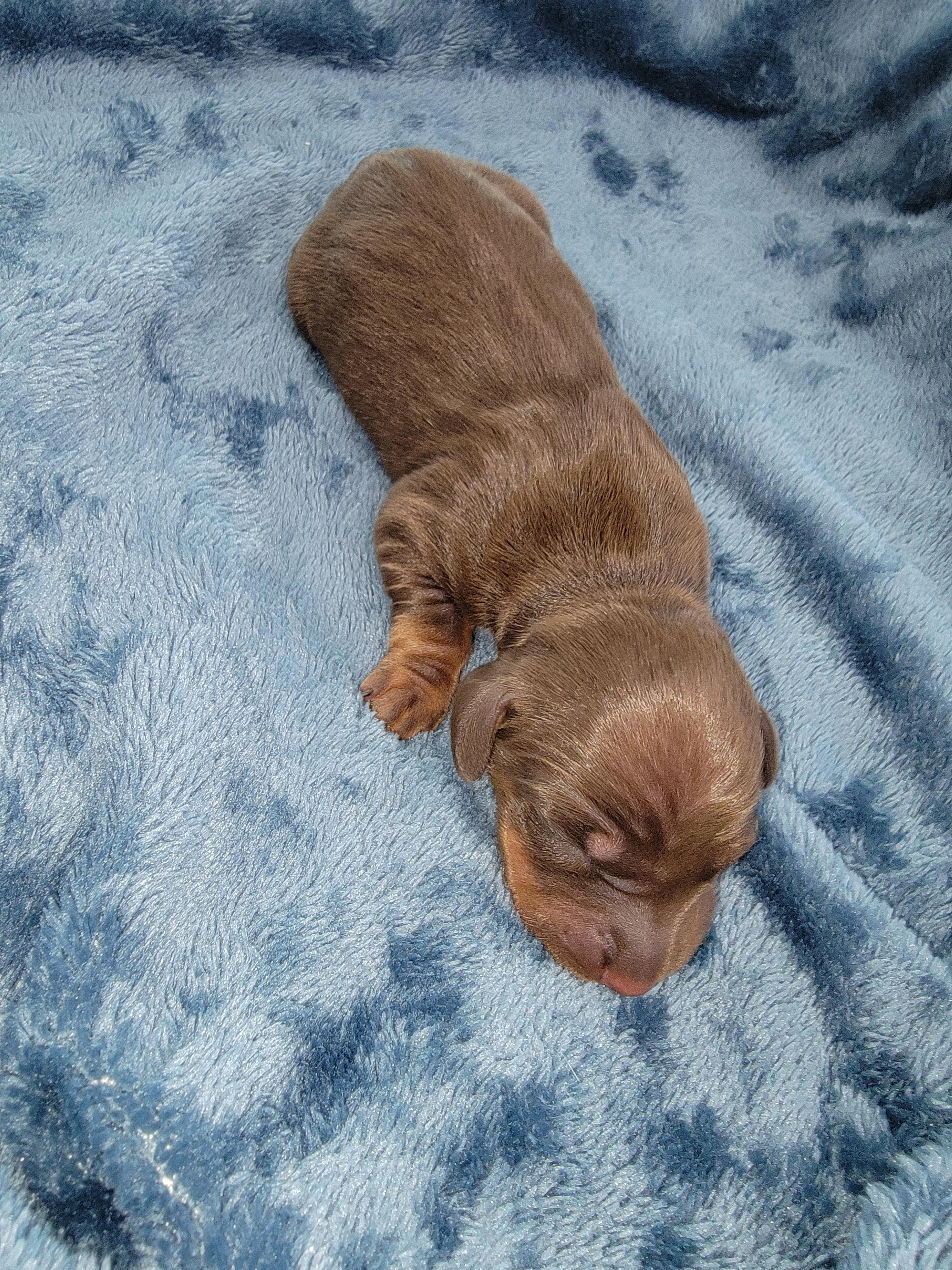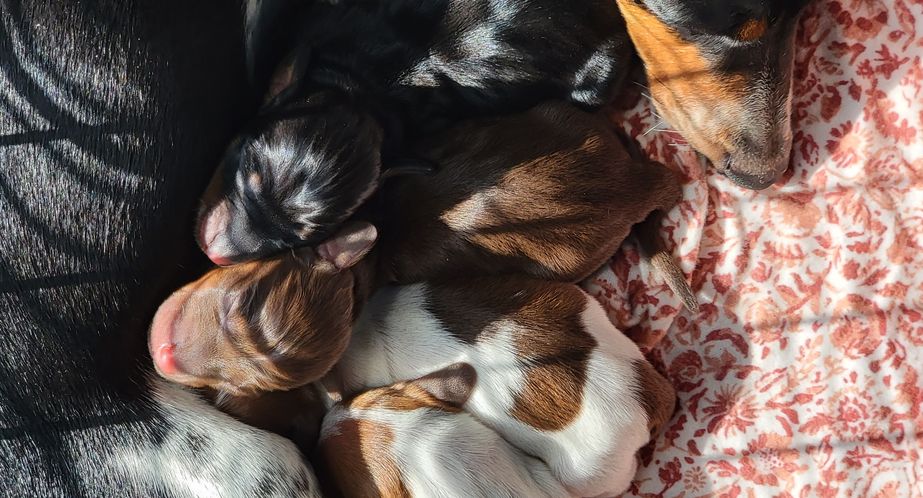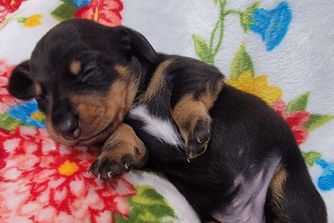 Our puppies include red, chocolate and tan, and black and tan. Colors will vary depending on the parent dogs.