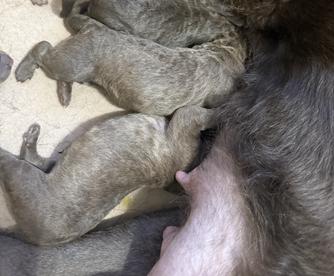 “Weimaraner Puppies will have their tails docked and dew claws removed.Chesapeakes will have dew claws removed. All puppies will have at least 3 wormings done, their first set of vaccinations. All pups are microchipped with BuddyID. That includes a lifetime data base entry to buddyid. All puppies will come with application for registration with AKC with limited Registration. We can discuss full registration. Most deposits are non refundable unless something happens that you can’t control. If you are unable to get a pup from one litter you will have the option to move to another litter.”