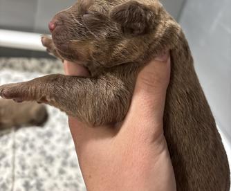 Our Chesapeake Bay Retriever puppies include dark brown, light deadgrass, light brown, deadgrass, brown, and sedge. Weimaraner puppies include gray and silver gray. Colors will vary depending on the parent dogs.