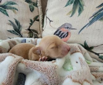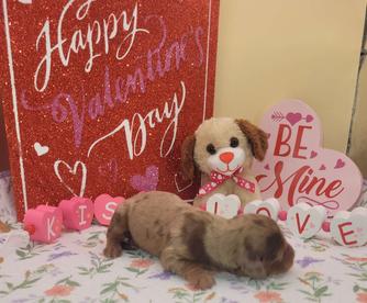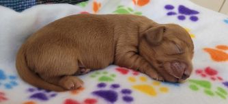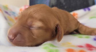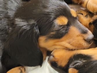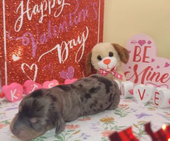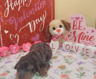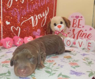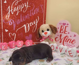 Michelle was wonderful to work with! She was very responsive, pateint with all our questions. She sent us videos and pictures of Bentley and kept up with us through the whole process. When we picked up our pup she had everything ready for us in a folder and even sent us home with his blanket, food and treats! We are so in love with this little guy and he completes our family! I would highly reccomend using Michelle for any Doxie pups !