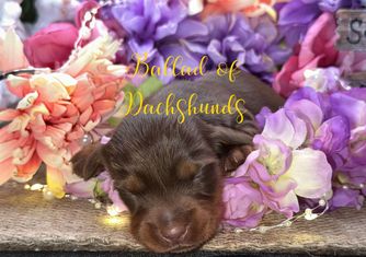 I'm Michele B., the breeder behind Ballad of Dachshunds located in Lake City, FL. We are committed to always responsibly breeding with the best interest of our puppies’ health and longevity at the forefront. The health, conformation, and temperament of our dogs are our main priority. We’re confident in the pups we raise and pick their forever families with careful attention.