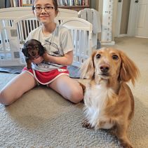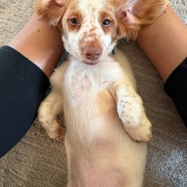 I am genuinely so happy to be writing this review. From start to finish, the process was so easy and seamless for my husband and I. We were looking for a little one to almost complete our family and be our current pups bestfriend. Speaking to Michele was very easy and she always responded in a timely fashion. She explained the process and told us what to expect. She was very communicative for the 7 weeks, from when we initially reached out and all the way to the day we arrived for pick up. We received a file of paperwork for our beautiful boy. Even a packet summary of the history of dachshunds! She recommended a great insurance and also gave us a copy of the contract. But what my husband and I thought was the sweetest, was the fact that she put together a little gift bag/care package to take home. It had a small bag of food, treats, a little toy, small pack of pee pads for the trip back home and pet blanket. She sat with us and went over lots of details and answered any questions we had. She was also so kind enough to gift us some farm fresh eggs!! Then we were off with our puppy. He's the sweetest, softest boy and the perfect addition. He's a dapple and his colors are to die for. We feel so lucky to have had such an amazing experience with Michele and will definitely come back when we're ready for another as well as recommend anyone to not hesitate to work with her!!!