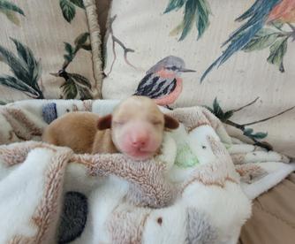 We've had Cooper for about two weeks now and have fallen in love with him head over heels. Michelle was very easy to work with.. she always responded to my emails and sent me weekly videos and photos of Cooper while we waited for him to be weaned from his momma. She sent a little goody bag home with him and a little extra food for him until we could buy a bag. I am always weary of sending money to strangers but I can recommend her with confidence.