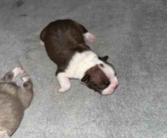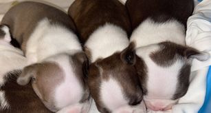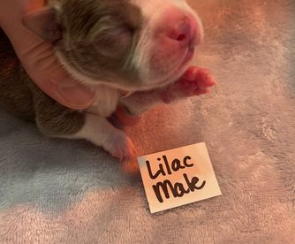 Our puppies include red, lilac, blue, black brindle and white, and black and white. Colors will vary depending on the parent dogs.