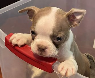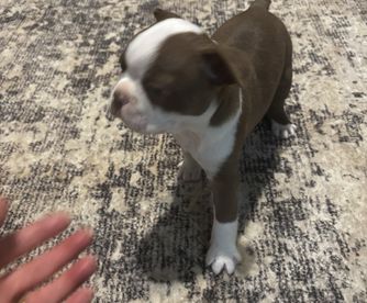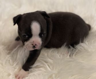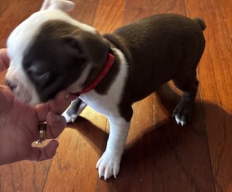 Breanna is a female Boston Terrier over 1 year old. Carefully selected as a great representative of her breed, Michelle decided to make her part of their program. Michelle has passed Good Dog’s screening process, which involved a review of their breeding practices, environment, and the mental and physical health of their dogs.