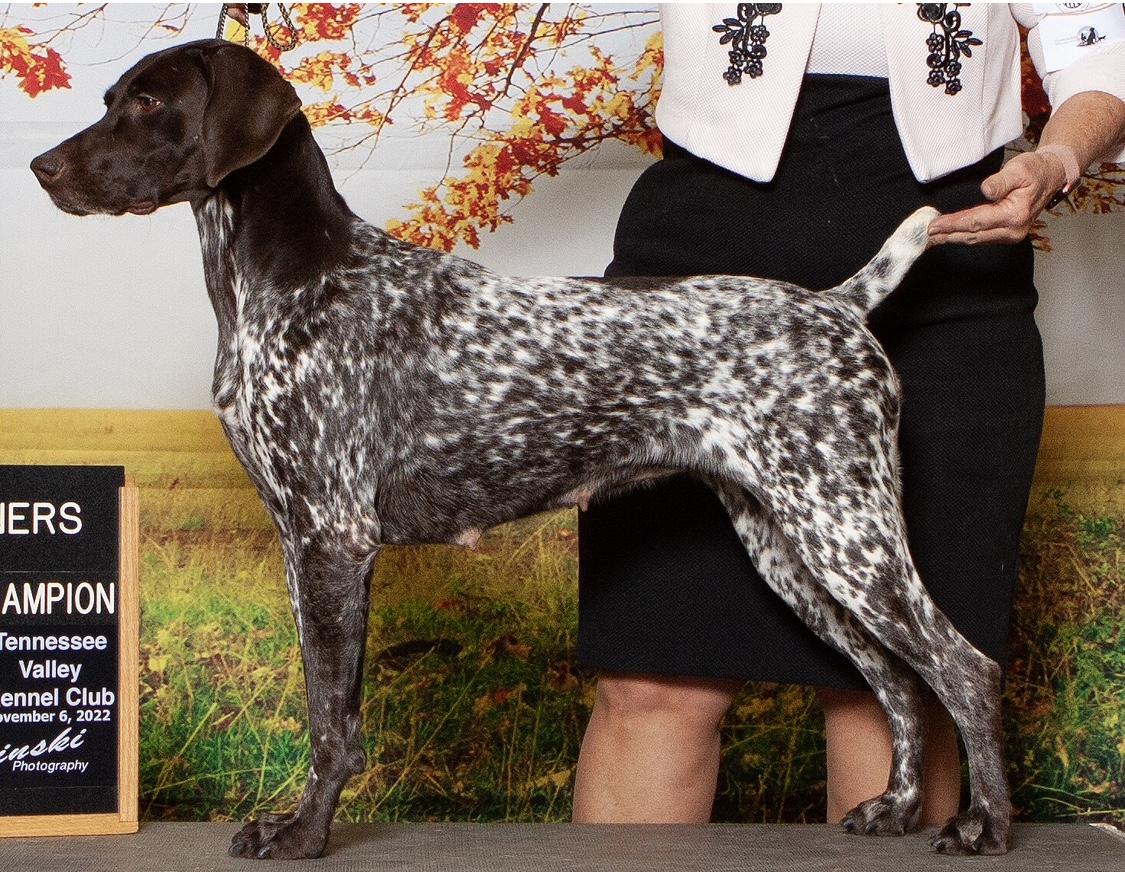 I was introduced to this breed in 2013 my husband Justin had told me about how great they were. He hunted behind GSPs for years & even raised a few for himself along with a small quail operation. I bought my first GSPs in late 2013, they ended up going on to be guide dogs and were sold for such. In 2014 we got Lady our foundation bitch and primary hunting dog. She has been our #1 ever since.
