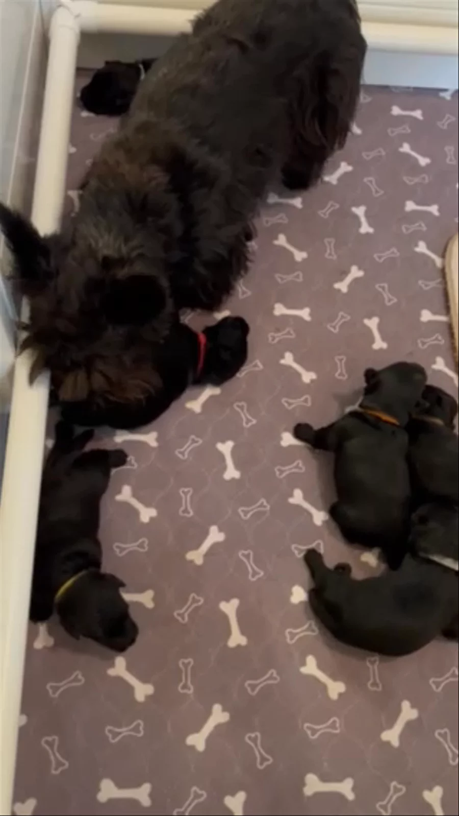 These beautiful babies are one week old. Three girls and three boys. Scotties, of course