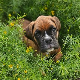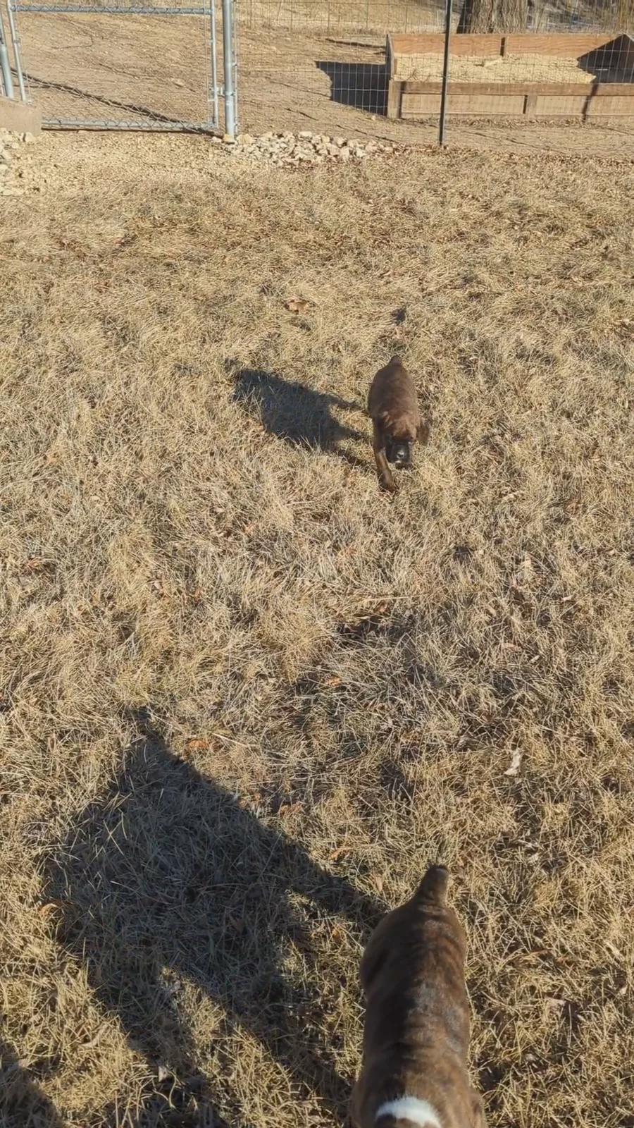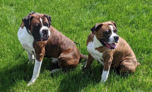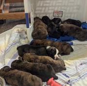 We are small. Our dogs are tested, but they are our pets first. They never leave us. We regularly have our "grandma" and "grandpa" dogs hanging out with puppies and we love having the huge age range :D All of our boxers (Pups & Adults) have access to a huge fenced in yard all day, every day. They can run & play together and it is so fun to watch them charge around and play together!