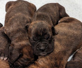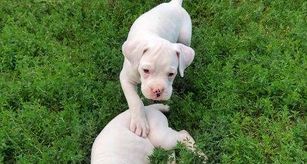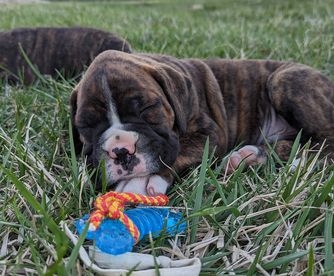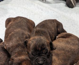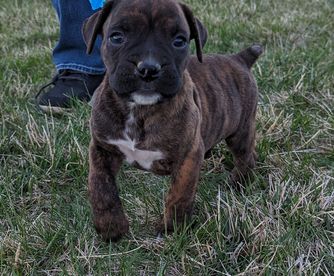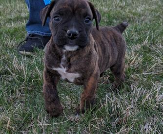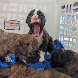 Our puppies include brindle and white. Colors will vary depending on the parent dogs.