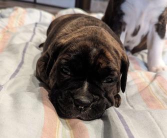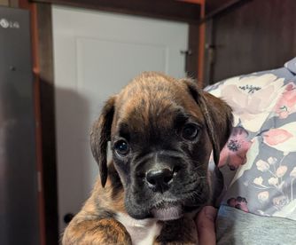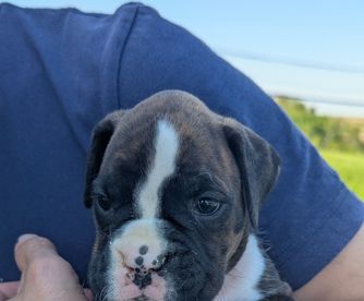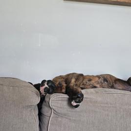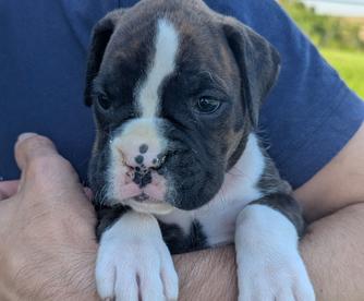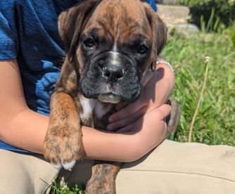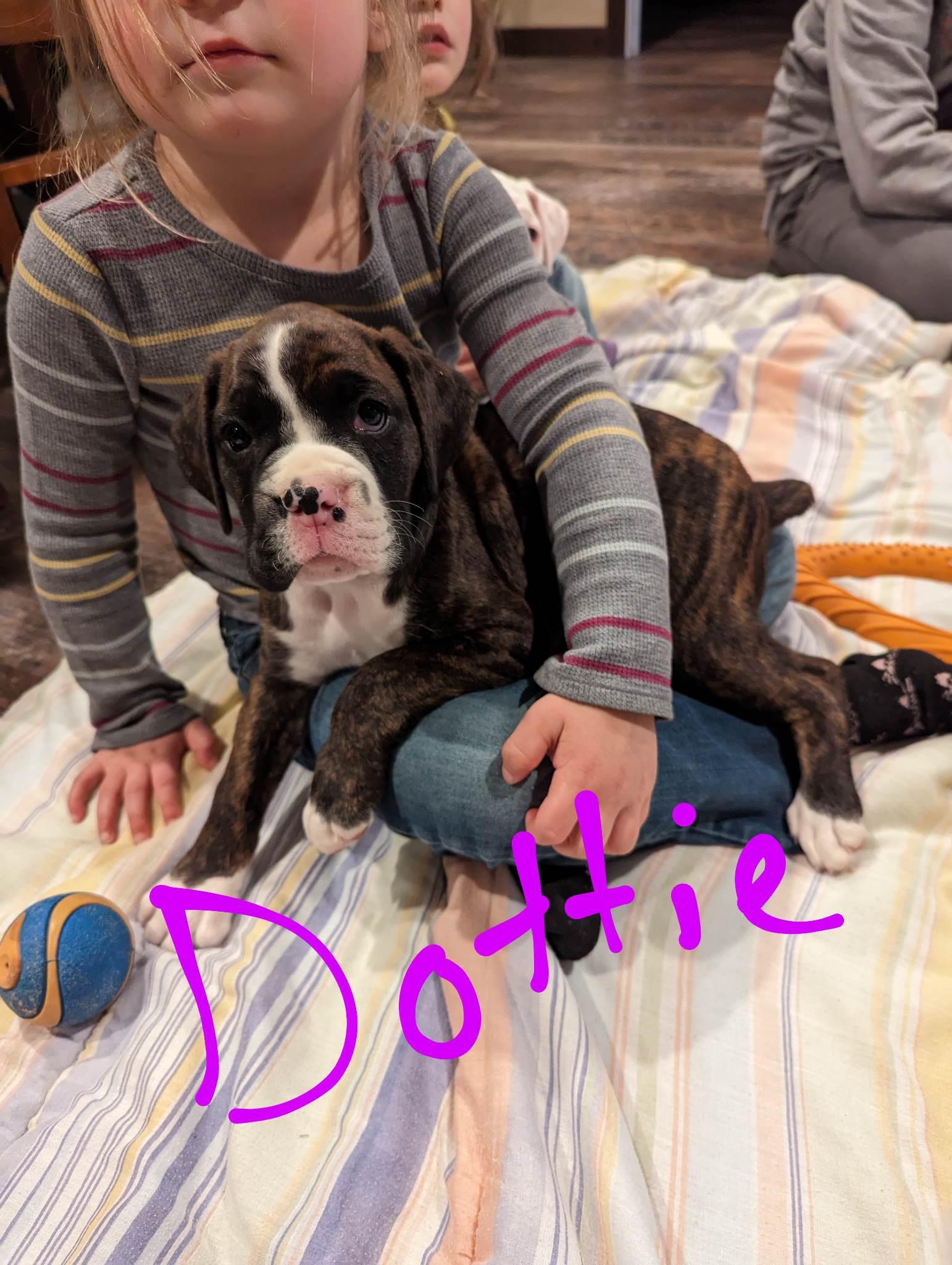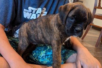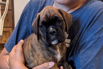 We had been looking to add another boxer to our family, which led us to Good Dog. We reached out to several, including Jenna, but she was so responsive to questions and sharing information even though we weren't quite ready when we first made contact. Once we were ready, I reached back out to her, and she was so forthcoming that she answered questions I didn't even knew we had. It was a quick decision for us to choose her, and she sent pictures and videos to keep us in the loop with all the puppies. She was so easy to work with, very responsive to messages and questions, and made me feel like I had known her forever. Picking up our puppy was a surprise for the kids and her and her family were so friendly to all of us. I would recommend her to anyone looking for a boxer.
