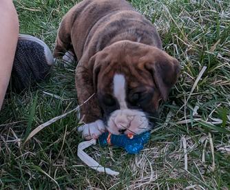 I'm Jenna L., the breeder behind Balltown Boxers located in Sherrill, IA. We are a small boxer breeder located in the tri-state area. We have 5 boxers who are our family pets & are also tested + have specific characteristics that we like to see in the breed. Puppies are well socialized - they are with children & adults from birth on and get to play with everyone daily!