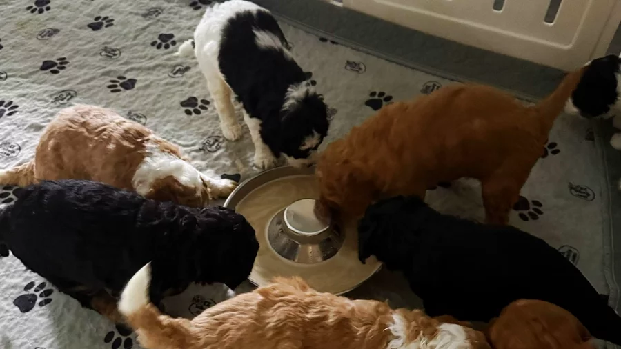 Week 6 Update – Jojo & Rocco’s Spring Litter 🌸🐾 It’s hard to believe how much has changed in just a few short weeks—these puppies are truly stepping into their little personalities now, and it is such a fun stage to experience. Today was a big milestone for the litter as they had their very first vet visit—right here at home. Keeping this experience in a familiar environment helps reduce stress and allows the puppies to be evaluated while they are relaxed and comfortable. Overall, the puppies did very well during their exams. The vet was very happy with their growth and development, and it was wonderful to see how calmly they handled being checked, held, and observed. Back in their play space, their world continues to expand. The puppies are actively exploring the puppy play area, and the caterpillar tunnel has quickly become a favorite. Watching pups work up the courage to go through, turn around, and go again has been such a great example of their growing confidence and curiosity. We’re also continuing our Puppy Culture work each day—introducing new textures, sounds, and gentle handling experiences. All of the puppies are becoming more comfortable being picked up, having their paws and faces handled, and beginning early grooming exposure. These small moments now make such a big difference in who they become later. One of the most special parts of this week is seeing the early glimpses of personality begin to shine through. While it’s still early and things will continue to evolve, we’re starting to notice some sweet differences: 🌼 Buttercup continues to be gentle and affectionate, with a calm, steady presence. She loves to be held and has a way of just melting into you. 🍯 Nectar is proving to be a true people-lover. She has a strong desire to be close to her humans and is often one of the first to notice when you step away—and one of the first to let you know she’d rather be with you. She thrives on connection and genuinely prefers human companionship over anything else. 🐾 We are also seeing some of the puppies step forward as little adventurers—often the first to explore new spaces or take on the tunnel—while others are showing a more snuggly, people-focused nature, seeking out connection and attention. It’s such a beautiful balance, and we love watching each of them grow into who they are meant to be. Another exciting milestone—everyone is eating well, growing beautifully, and settling into a natural rhythm of play, exploration, and rest. And we are especially looking forward to this weekend… our Puppy Party on Saturday! 🎉 Many of our families will be meeting the puppies for the very first time, and it’s always such a meaningful moment. These early connections are so special, and we can’t wait to see those bonds begin. We’ll be sharing more after the weekend—this is where everything starts to feel very real 🤍