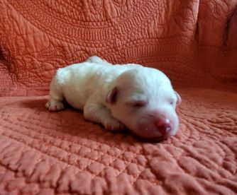 Our puppies include white and buff and white. Colors will vary depending on the parent dogs.