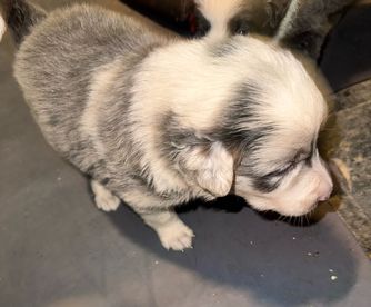 Our puppies include slate merle and white and blue. Colors will vary depending on the parent dogs.