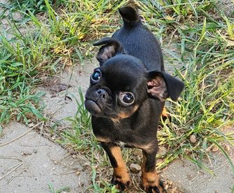 Griffonzie is a black & tan male out of my Russian import, Imgosbull Wild Plum, and sired by Rudolph2. His pedigree includes multiple international champions from the Imgosbull and Ataki Griffonov lines, combining outstanding structure with a sweet, affectionate temperament. Embark tested and confirmed 272/272 conditions clear, including all breed-relevant genetic risks.DNA verified 100% Brussels Griffon.
