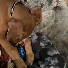 My experience with Barb and Bar B Ridgebacks has been terrific. I'd been searching for a Rhodesian Ridgeback puppy for a while. I was very particular because my previous RR had a genetic disease, DM, and I wanted to be sure my next puppy 's parents had all the important genetic testing. Bar B fit the bill perfectly. I'm in Seattle and Bar B is in Nebraska, but Barb arranged for another adoptor to bring my puppy to Wyoming, where I picked her up. Moony has been a joy in my life. She's a bright, funny, perfect trail dog. She hikes with me on the regular, loves the snow, swims (!), and has a wonderful, gentle temperment. Moony is good with kids and very friendly. She's a quick learner. Moony is the perfect companion for me.